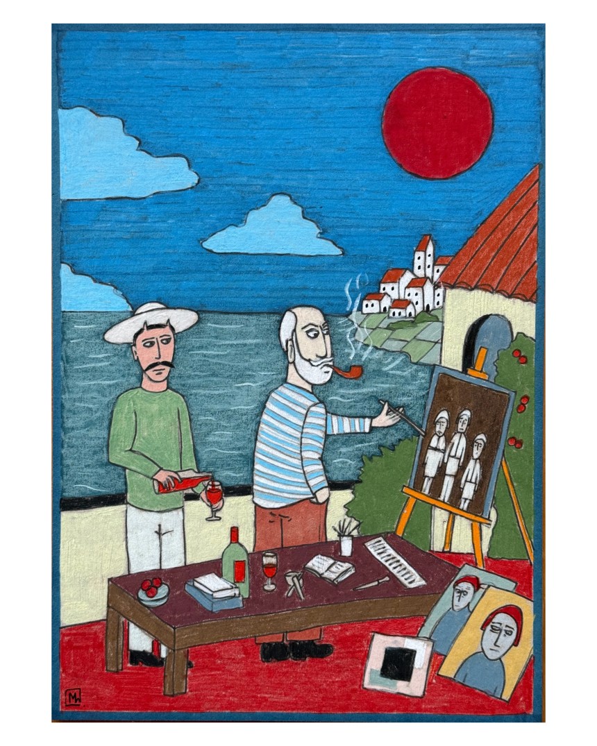 Status: in private collection Price: n/a Size: 15 cm x 21 cm Technique: mixed media Description: This colorful and whimsical depiction of...